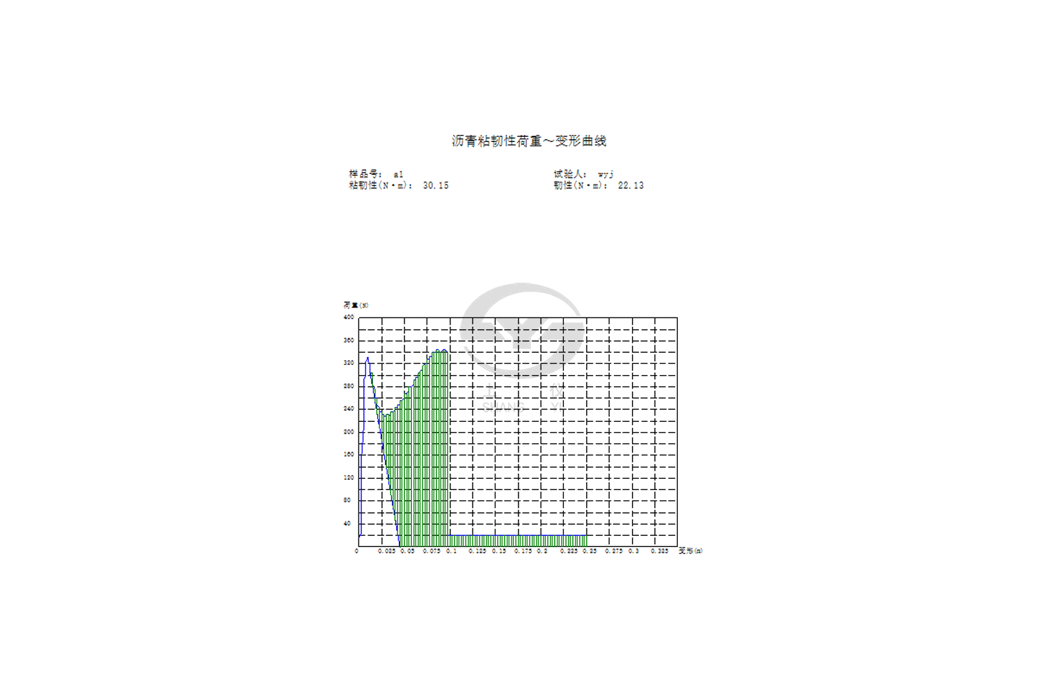 2、自主研發(fā)的試驗(yàn)檢測(cè)軟件,能自動(dòng)繪制打印“粘韌性試驗(yàn)荷重~變形曲線(xiàn)”和自動(dòng)計(jì)算瀝青的粘韌性、韌性。